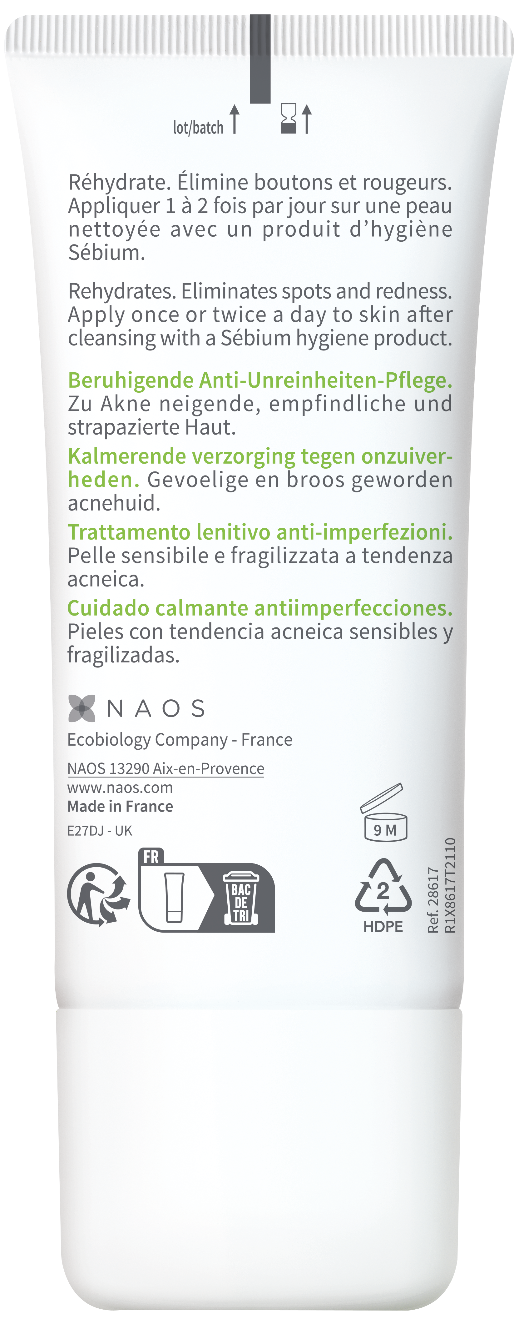 Soothes Eliminates spots and redness Rehydrates Good tolerance – Non-comedogenic – Good make-up base